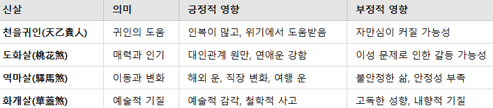 신살 의미 긍정적 영향 부정적 영향
